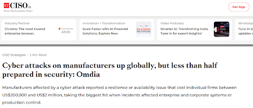 Financial Losses: The cost of a cyberattack extends beyond immediate operational disruptions. Manufacturers may face hefty ransom demands, penalties for non-compliance with cybersecurity regulations, and potential loss of business due to diminished customer trust.